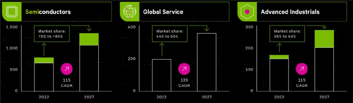 ►下游市场#1:设备厂商。根据SEMI测算,2023年全球前道设备市场规模906亿美元,其中刻蚀设备、薄膜设备、去胶设备等干法设备占比约45%,参考半导体设备上市公司的财务数据,且半导体设备企业的毛利率普遍在40%-50%之间,其中半导体设备零部件占营业成本比例80%左右,真空系统设备采购占比约20%~30%,由此我们推测,2023年全球设备厂采购真空零部件35.9~53.8亿美元;