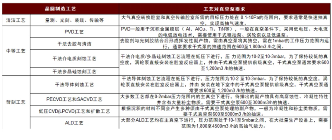 图表5:不同工艺对真空泵的要求